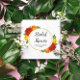 Flores vermelhas, laranja e douradas de outono bordeando uma moldura circular dourada com eucalipto e folhagens botânicas para um evento de outono