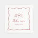 Este lindo design de chá de bebê inspirado na Itália apresenta letras cursivas em estilo manuscrito acentuadas com uma borda de fita ondulada em vermelho tomate. Ilustrações desenhadas à mão de macarrão gravata borboleta, vinho e um limão siciliano completam o design para um visual de verão da Costa Amalfitana. Estes guardanapos elegantes de chá de bebê mediterrâneo apresentam "that's amore" em letras manuscritas com os nomes do casal abaixo.