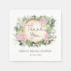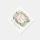 Guardanapo para festa com tema botânico rústico, apresentando folhas de verde elegantes em aquarela e rosas de jardim cor de rosa empoeirado. Personalize o texto para adequar ao seu evento, por exemplo, chá de bebê, celebração de bebê, aniversário, batizado, crisma, comunhão, etc.
