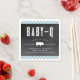 Este guardanapo de chá de bebê é perfeito para um chá de bebê com tema de churrasco. Os acentos azuis o tornam perfeito para um menino. Os acentos gingham adicionam uma suavidade sutil ao design de placa de giz tradicional. Isso é ótimo para um chá de bebê para a mamãe ou para casais. Personalizar o texto é fácil com o botão de personalizar localizado na página de design.