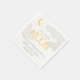 Guardanapos de papel para chá de bebê lua acima com nuvens cinza claro, estrelas e lua apresentam gráficos modernos em cinza e amarelo.