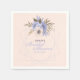 Este guardanapo de papel para chá de noiva floral apresenta rosas silvestres de cinco pétalas em violeta pastel e pêssego e bordas geométricas sobre um fundo de pêssego pastel. Personalize o texto nos campos do modelo ou clique em personalizar para selecionar um estilo de fonte, tamanho e cor de sua preferência.