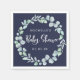 Um guardanapo moderno que corresponde ao nosso conjunto de convites, com um fundo marinho, uma cor aquática verde azul de eucalipto, e texto branco em sans serif e letra escrita à mão. Personalize com seu nome e data de chá.