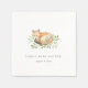 Personalize esses doces guardanapos-do-chá de fraldas com o nome e data de chá da mãe, debaixo de uma raposa-d'água enrolada num leito de folhas e folhagem verdes de eucalipto. Concebido para corresponder à nossa coleção de convites de chá de fraldas Woodland Fox.