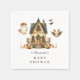 Este design neutro de chá de fraldas de Halloween traz um charme assustador com tons de queda suaves e detalhes de áreas florestais reluzentes. Uma casa assombrada aconchegante é cercada por fantasmas bonitinhos, abóboras e morcegos — perfeita para uma celebração de bebês do outono, neutra em termos de gênero e inspirada em cottagecore.