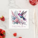 Um beija-flor espantoso em tons de rosa, roxo e azul paira graciosamente perto de uma delicada flor roxa, capturando a beleza da natureza em movimento.