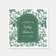 Este lindo e elegante guardanapo de chá de fraldas apresenta um antigo padrão verde Chinoiserie. O texto combina o script manuscrito e as fontes serif para uma aparência na moda e moderna. Isto é perfeito para um primavera ou chá de fraldas de jardim de verão.