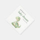 Estes bonitos guardanapos de chá de fraldas apresentam um dinossauro verde a aquarela abaixo das palavras "chá de fraldas" na fonte impressa a verde. Personalize o texto com o nome da futura mãe e a data em cinzas de carvão serif.