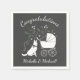 Inclua o grande irmão ou irmã bebê pelado na celebração com este adorável design de chá de fraldas de cão German shepherd! Perfeito para um amante de cachorrinho com um bebê a caminho. O German shepherd está ao lado de uma adorável carruagem de safra. A cinza escura a torna perfeita para um chá sem sexo ou neutro em gênero!