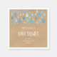 As gotas de chuva com padrão azul-bebê chic caem em direção aos seus detalhes personalizados sobre um fundo de feto kraft rústico, sobre este chá de bebê fofo, borrão ou guardanapo de chá de casais. Projetado por Thisnotme©