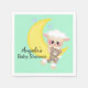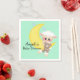Um carneiro bonito com ursinho de peluche empoleirado numa lua crescente faz um adorável guardanapo de chá de fraldas. Feito backup em um pequeno fundo aqua com outros produtos correspondentes disponíveis neste design. Edite o texto de exemplo com o nome do honroso do seu chá de fraldas ou outro texto. A adorável cortesia gráfica de Kristi W. Designs.