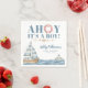 Este guardanapo de chá de fraldas com tema náutico apresenta um veleiro clássico azul e branco no centro, flutuando em água azul com um anel de vida vermelho e detalhes sutis de corda para um charmoso toque marítimo. Projetado em um estilo simples, mínimo e elegante, o texto é definido em uma mistura de delicado script escrito à mão e fontes clássicas de serifa, tudo em cinza para um aspecto eterno e neutro. Perfeito para uma Ahoy, é um chá! ou qualquer celebração inspirada no oceano, este guardanapo adiciona um detalhe coordenado à sua configuração partidária. Personalize o texto, as fontes e as cores para corresponder ao seu evento!