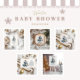 Celebrar um alegre chá de fraldas de inverno com este charmoso design com um pinguim pintado à mão em um chapéu e lenço de Papai Noel, cercado por caixas de presentes empilhadas e ornamentos azuis festivos. O estilo de aquarela suave e os tons legal criam uma vibração divertida e acolhedora — perfeita para receber um menino durante o feriado.