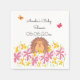 Guardanapos personalizados com um adorável ouriço escondido num campo de flores cor-de-rosa e amarelas.