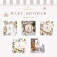 Celebrar um chá de fraldas de inverno com este design macio e festivo com caixas de presente pintadas à mão empilhadas debaixo de uma árvore de Natal fosco. Tons brilhantes, estrelas douradas e detalhes confortáveis de feriado adicionam um toque doce e elegante — perfeito para receber um pouco durante a época mais mágica do ano.