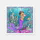 Sereia, guardanapos chás de fraldas com adorável menina de sereia africana-americana com bonito cauda roxa num lindo azul rosa e lacrimogênio sob o fundo do mar. Esses bonitos guardanapos de papel para chá de fraldas de sereia podem ser personalizados com texto.