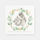 Adicione um sotaque bonito à sua capa de tabela de eventos com estes guardanapos de papel de chá de fraldas personalizáveis. Apresenta um guaxinim de bebê a aquarela numa coroa verde. Personalize adicionando seus detalhes. Estes bonitos guardanapos de papel de guaxinim são perfeitos para chás de fraldas de madeira.