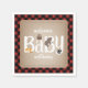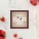 Os guardanapos chás de fraldas com ilustração de uma raposa, coruja, ursinho e guaxinim que se baseiam no texto "BABY". O fundo é o estoque de papelão castanho inspirado em uma borda de xadrez de búfalos vermelha e preta. Personalize o nome.