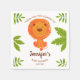 Este bonitinho guardanapo apresenta um leão relaxando à sombra de galhos verdes e folhosos. Personalize adicionando seu nome com este texto de tendência. Você pode alterar a cor e o estilo da fonte, conforme desejar, clicando no botão Personalizar mais. Misturar e combinar com outros produtos adoráveis nesta Coleção de Chás de fraldas Selgle Safari Animal.