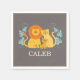 Uma família bonita de leões decora este guardanapo para a celebração do seu chá de bebê.