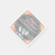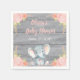 Um adorável guardanapo de chá de fraldas elefante para uma garota. Projetado para combinar nossos convites com lindos elementos florais cor-de-água rosa e um elefante bebê tenente em um fundo de prancha de madeira rústica de cinza.