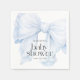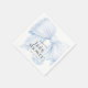 Um guardanapo de chá de fraldas bonito para um chá de fraldas-menino, este design tem um arco azul pastel grande inclinado para um lado. Um simples modelo de texto permite personalizar este guardanapo com o nome do convidado de honra e a data do chá. Os guardanapos estão disponíveis em três tamanhos: mostrados aqui no tamanho menor do bar, eles também estão disponíveis em tamanhos de almoço e janto.