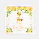 Este bonitinho e caprichoso guardanapo de chá de fraldas apresenta uma girafa adorável com uma coroa de flores e arranjos florais amarelos com falso confete de brilho dourado. O texto combina o script manuscrito e as fontes sans serif para uma aparência na moda e moderna. Isto é perfeito para um chá de fraldas temático de girafa. Gráficos por Heideramalice e SunflowerDayLove