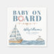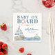 Este guardanapo de chá de fraldas com tema náutico apresenta um veleiro clássico azul e branco no centro, flutuando em água azul com um anel de vida vermelho e detalhes sutis de corda para um charmoso toque marítimo. No topo, "Baby On Conselho" é exibido em uma mistura de delicado script escrito à mão e fontes clássicas de serifa, tudo em tons de azul para uma aparência ousada e eterno. O resto do texto complementa o design no mesmo estilo elegante. Perfeito para um chá de fraldas ou qualquer celebração inspirada no oceano, este guardanapo adiciona um detalhe coordenado e na moda à sua configuração partidária. Personalize o texto, as fontes e as cores para corresponder ao seu evento!