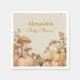 Um design de outono encantador, com abóboras aquáticas, cogumelos silvestres e flores de outono. Os tons de terra e detalhes rústicos criam uma atmosfera quente e silvestre perfeita para celebrar um pequeno a caminho.