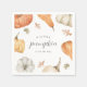 O charmoso design de chá de fraldas de queda apresenta uma borda de abóboras aquáticas mudas e folhas de queda, com "uma pequena abóbora está a caminho" no centro. Perfeito para chás de fraldas de outono ou época de Halloween.
