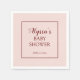 Bonitos guardanapos de papel cor-de-rosa e borrado Texto é um tipo de letra de escrita de caligrafia e inclui o nome e a data do chá de fraldas da mãe. Estes guardanapos combinam com a nossa Coleção de Chás de fraldas Florais Borgonha e Cor-de-Rosa Esbranquiçada. Entre em contato conosco para obter ajuda com a personalização ou para solicitar produtos correspondentes.