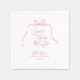 Ela está se casando! Com um design simples e minimalista adornado com um charmoso arco rosa e a frase manuscrita "Ela está se casando". Estilo caprichoso para uma celebração casual de chá de noiva. Personalize o modelo para incluir o nome da noiva e a data do evento, tornando cada guardanapo um souvenir especial para a ocasião. © Kimbellished, LLC