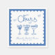 Guardanapos personalizados para chá de noiva com um tema encantador em azul empoeirado e branco com elementos desenhados à mão de drinques, corações e a palavra "Brindes". Adicione o título do seu evento e data. Kimbellished, LLC