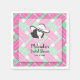 Uma senhora com seu chapéu Derby contra um fundo de blocos diagonais de listras rosa quente, verde e branco nestes guardanapos para uma festa de chá de noiva com tema Derby. Use para qualquer ocasião, basta mudar as palavras. (Imagem da senhora pode ser excluída.) Itens CORRESPONDENTES em nossa loja.