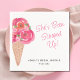 Este guardanapo de chá de noiva temático de sorvete é decorado com flores em aquarela e um cone de sorvete.