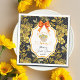 Um design elegante de Chá de Noiva com abelhas e fundo de flores douradas e um laço coquete laranja.