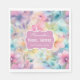 Guardanapos para chá de noiva com fundo floral pastel e uma moldura rosa.