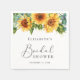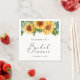 Guardanapos rústicos para chá de noiva com ramalhetes em aquarela de flores de girassol e folhagens de eucalipto, uma caligrafia estilosa e tipografia elegante serifada.