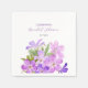 Guardanapo de papel para Chá de Noiva simples e elegante com flor de gerânio roxa rosa e texto em caligrafia vibrante.