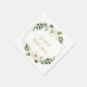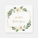 Estas guardanapos de chá de noiva estival apresentam folhagem verde em aquarela com acentos florais brancos e uma moldura geométrica com brilho dourado.
