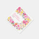 Este guardanapo de festa de chá de panela apresenta um design floral vibrante e animado pintado à mão, perfeito para adicionar um toque de cor a qualquer celebração. O design apresenta uma impressionante variedade de flores em aquarela em tons de rosa brilhante, pêssego suave, amarelo alegre e verde delicado, todos dispostos em uma bela borda que emoldura o texto personalizado no centro. A fonte moderna em estilo de caligrafia adiciona um toque chique, tornando o guardanapo elegante e funcional. Ideal para um chá de panela de primavera ou verão, este guardanapo traz uma atmosfera alegre e festiva para o evento, melhorando a decoração geral com seu visual charmoso e fresco.