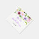 Este guardanapo lindo e elegante apresenta flores roxas e folhagens em aquarela. O texto combina fontes manuscritas e serifadas para um visual moderno e sofisticado. É perfeito para um chá de noiva rústico de primavera.