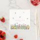 Boêmio, estival e elegante, este guardanapo de chá de noiva apresenta um campo de cores vibrantes com delicadas flores silvestres, borboletas, abelhas e joaninhas.