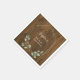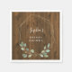 Destes guardanapos modernos e elegantes apresentam uma coroa de folhas de eucalipto verde em aquarela e uma moldura geométrica em dourado falso sobre um fundo marrom que imita madeira. Você pode facilmente alterar o texto, tornando este perfeito para um chá de bebê ou chá de noiva.