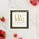 Este design de guardanapo Eu Faço Churrasco preto e dourado é personalizável para o seu evento especial. Com um fundo preto com pérolas douradas, este design é perfeito para a sua festa de noivado ou chá de casal. As luzes na frente adicionam um toque divertido às fontes serif e manuscritas.