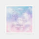 Napo de papel brilhante e romântico, com chá de panela ilustrado a aquarela de céu roxo, rosa e azul com nuvens e estrelas.