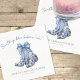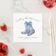 Este simples e elegante design de guardanapo para chá de noiva apresenta a frase “algo azul antes de eu fazer” no topo em uma caligrafia de letra cursiva azul suave, adicionando um toque doce e divertido. No centro, um par de botas de cowboy aquareladas em azul com um laço delicado traz um visual rústico e inspirado no campo.
