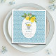 Um design elegante de Chá de Panela com fundo de azulejo azul e um copo de limões.