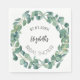 Fundo branco, texto preto. Decorado com a coroa de eucalipto. Personalize e adicione uma data e um nome. Um moderno estilo escrito à mão.