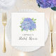 Estes guardanapos chás de panela apresentam um buquê de flores de hydrangea púrpura com folhagem de folha. Você pode personalizar esses guardanapos com o nome da noiva. Outros suprimentos de chá de panela correspondentes também estão disponíveis.